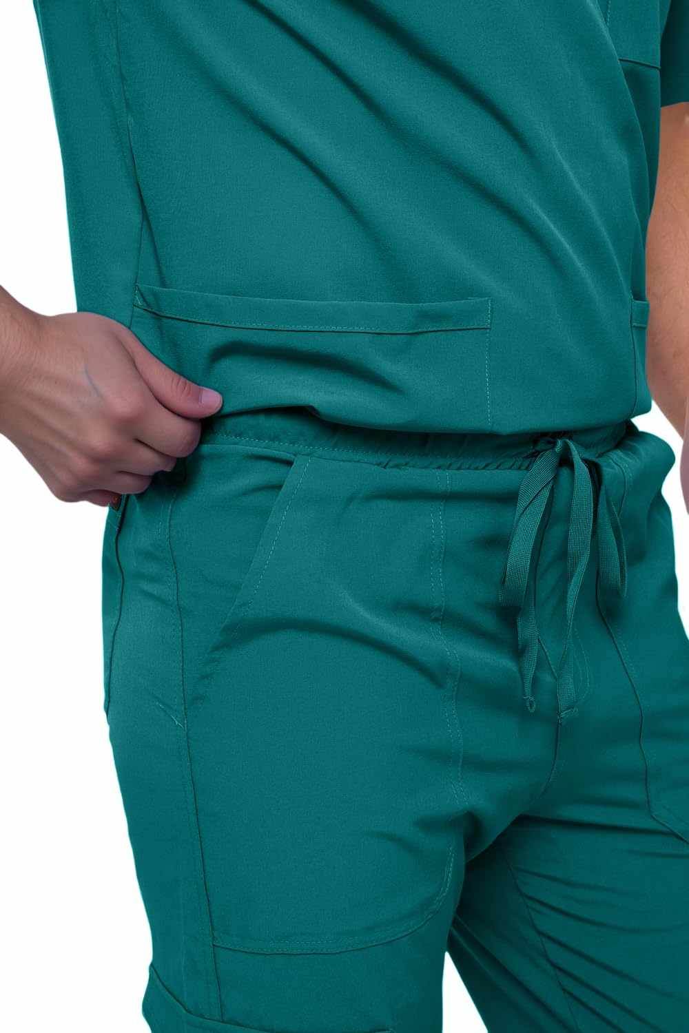 - A POCKET FOR EVERY NEED- For the guy who has a lot of stuff- this scrub set is for you. The v-neck top has three pockets- two oversized lower pockets and a roomy chest pocket. The scrub bottoms feature six large pockets- two back packets, two hip pockets, and two cargo pockets to secure all your belongings