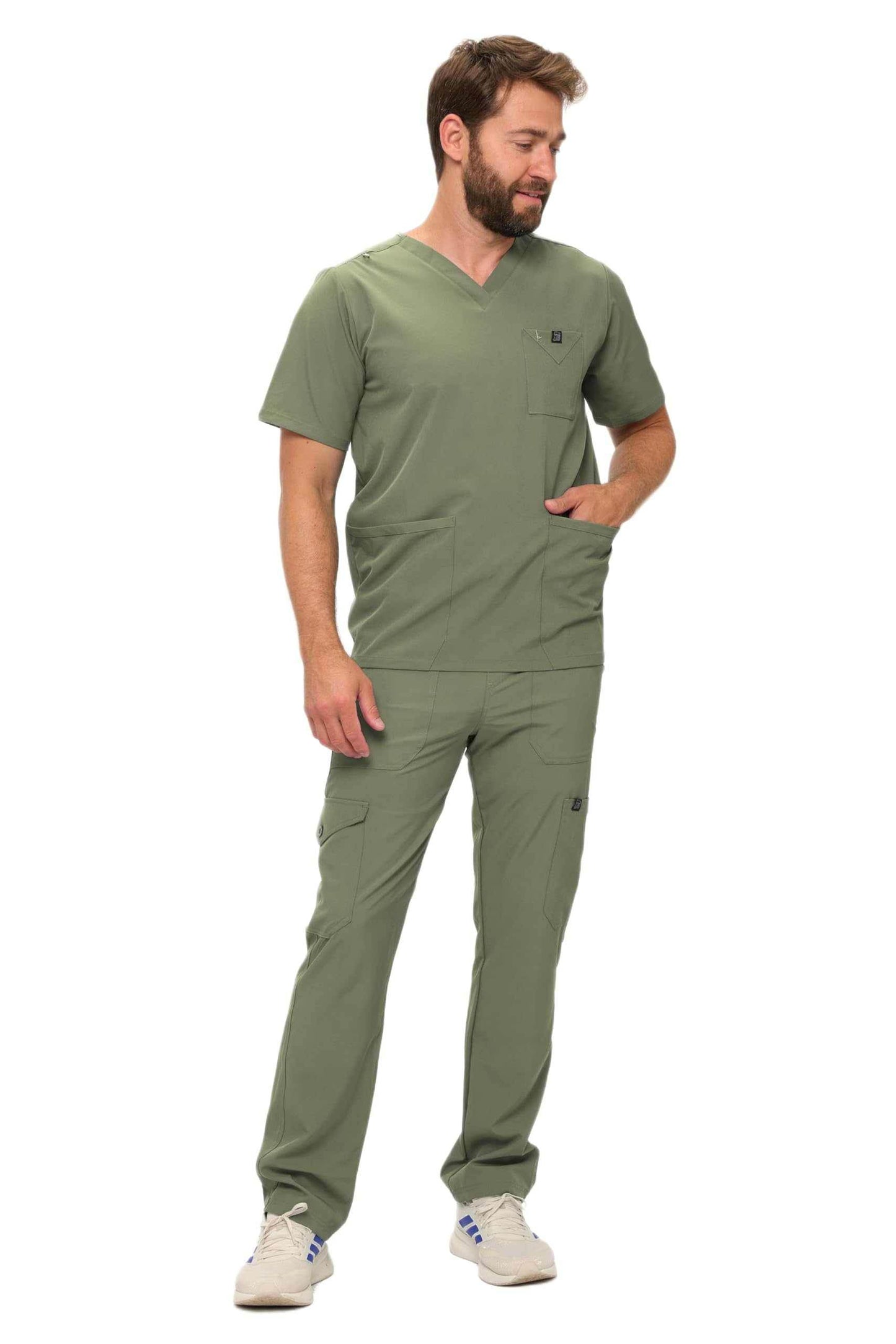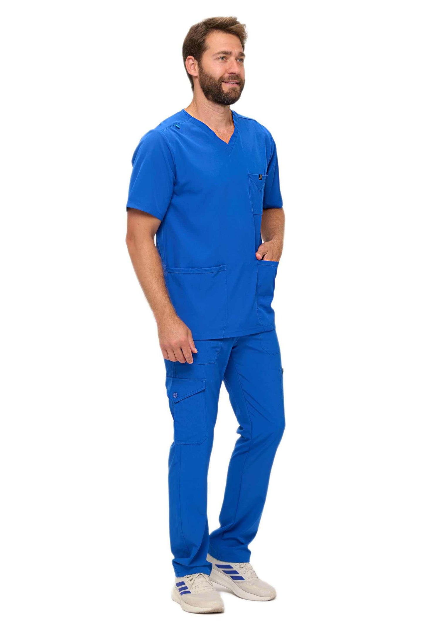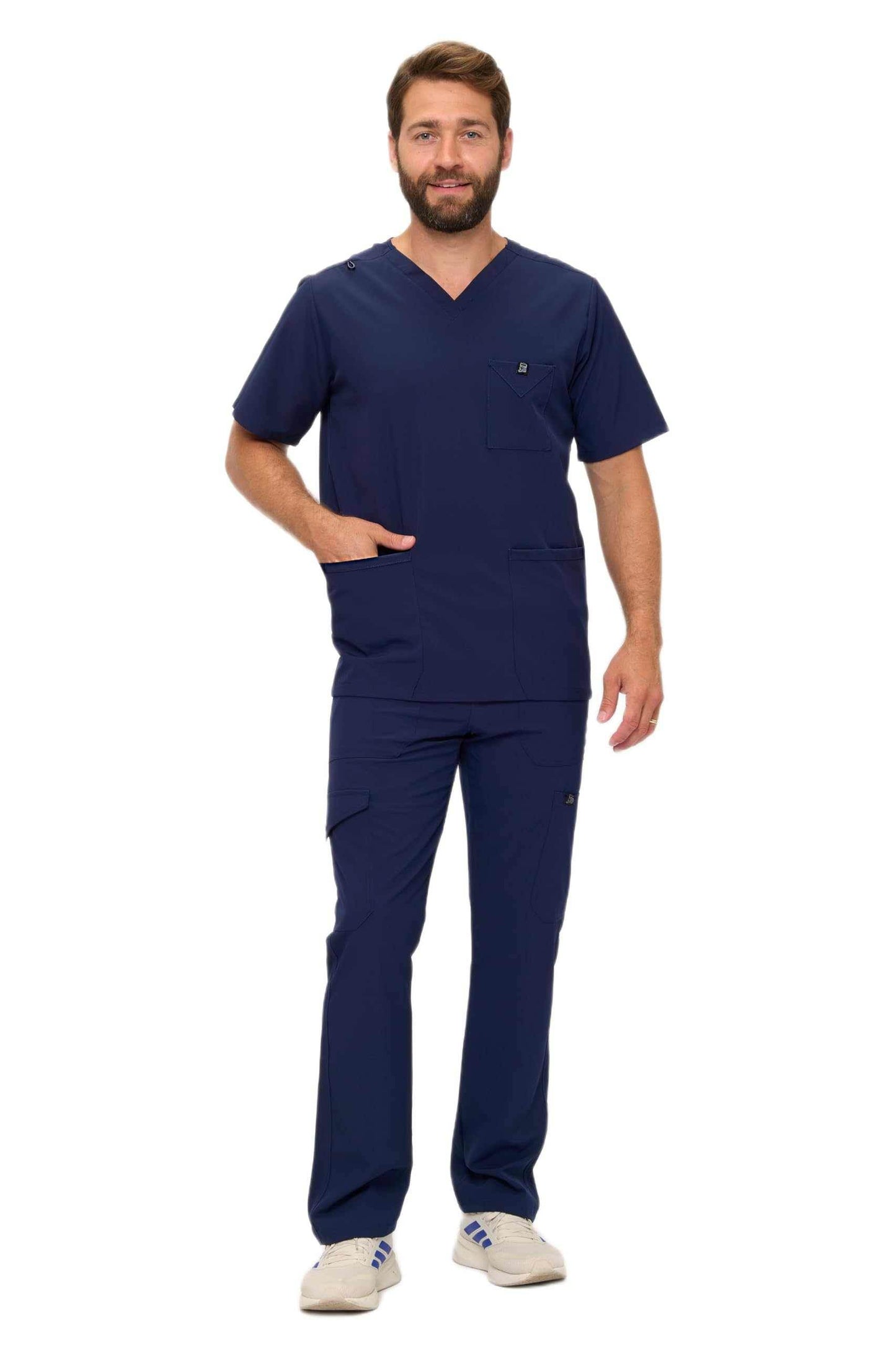 - Multi-Pocket Cargo Design for Maximum Functionality – Features multiple utility pockets including chest, side, and cargo pant pockets—ideal for storing medical tools, phones, pens, and personal items. A top choice in cargo scrubs for men.